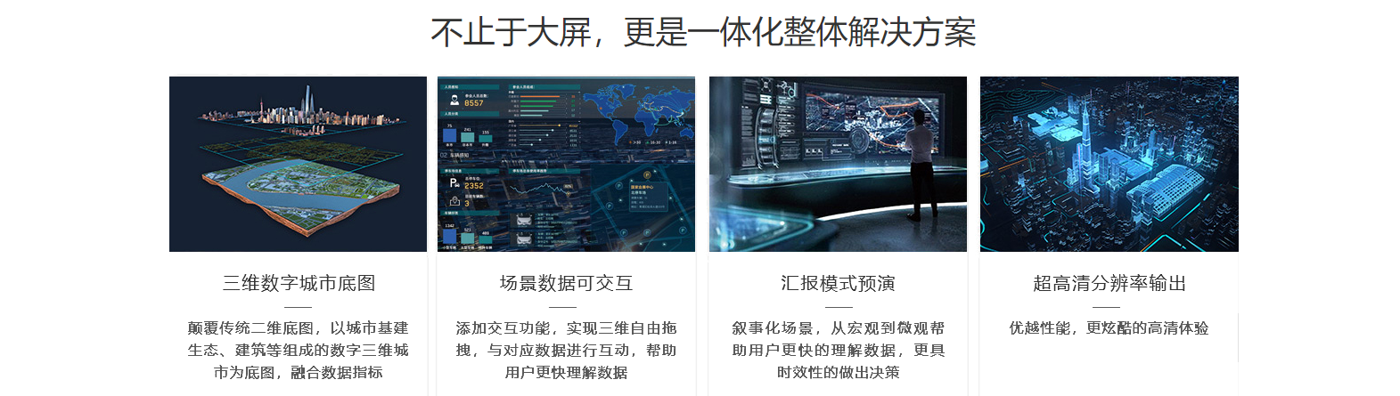 將大量數據進行可視化設計、交互設計展示,實現各類云數據和專業數據的實時圖形可視化、場景化,清晰有效地傳達與溝通信息,在美觀與功能之間達到平衡,幫助人們深入理解洞察復雜的數據集。
